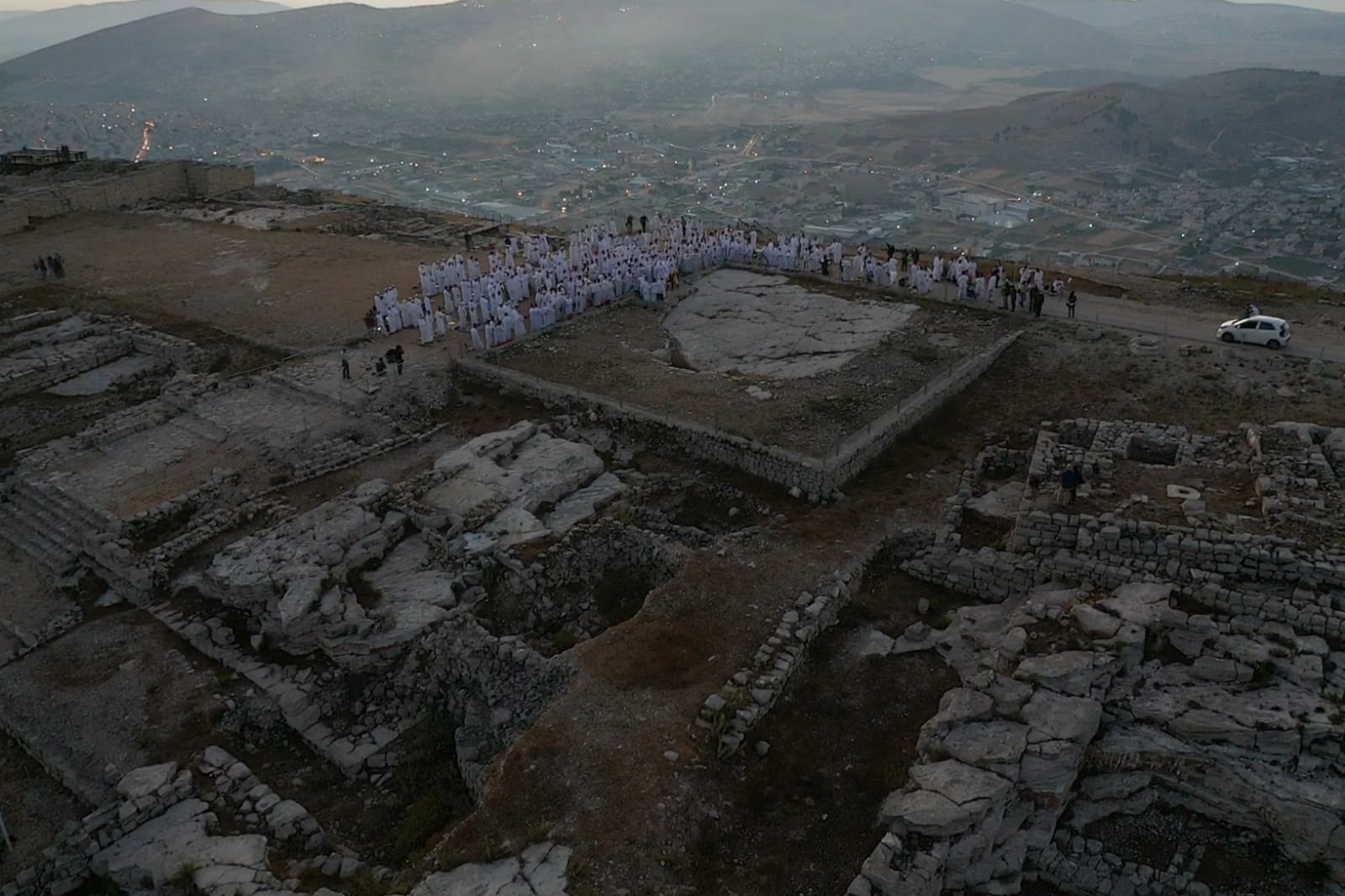 Naast de berg Gerizim ligt een dorp waar een bijzondere gemeenschap woont: de Samaritanen. Volgens de Samaritanen is de berg Gerizim ook de berg Moria, de Tempelberg en de plaats waar Abraham op de proef werd gesteld om Izaäk op te offeren. Er werd in de vijfde eeuw voor Christus door Sanballat, de gouverneur van het Samaria gebied in die tijd, een tempel gebouwd op de berg. Deze tempel is aan het einde van de tweede eeuw voor de jaartelling vernietigd en later is er een kerk gebouwd op de ruïnes van de tempel.
