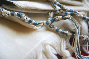 “Wat zijn toch die draadjes die uit de broek van de mannen hangen?â€. Dit is een van de vele vragen die menige gids van zijn toeristen krijgt. Het antwoord daarop vinden we in het boek Numeri op hoofdstuk 15 van vers 37 tot 41. En daar staat: “Zeg tegen de Israëlieten dat zij en al hun nakomelingen aan de zoom van hun kleren kwastjes moeten bevestigen waarin een blauw purperen draad verwerkt isâ€. Omdat dit vroeger en ook vandaag een zeldzame kleur was, vraagt men zich af: “hoe komt men aan deze purperen verf?â€.